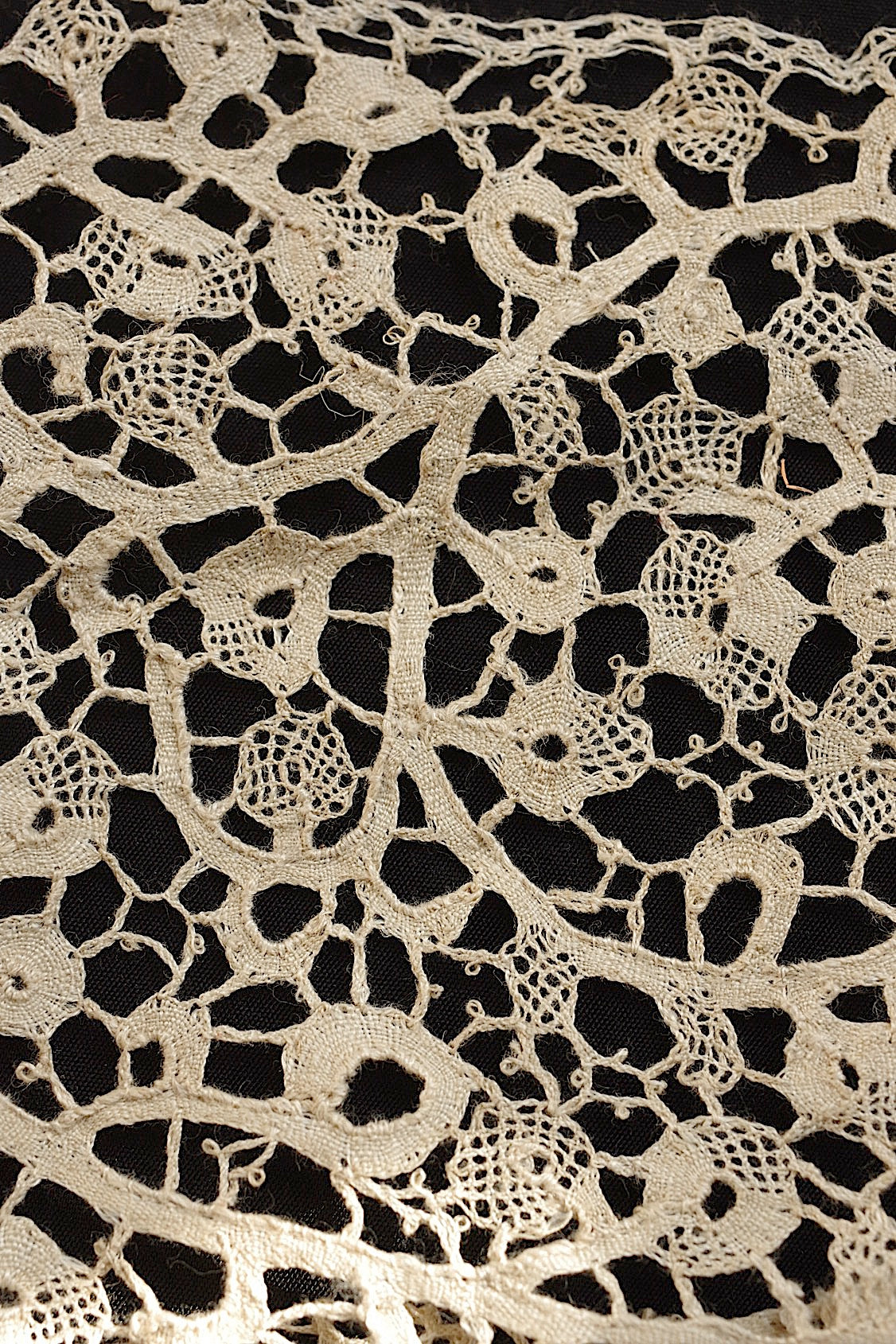 リネン糸で丁寧に織り上げられたアンティークフレミッシュレースです。しっかりとした質感と繊細な柄が調和し、伝統的な職人技を感じさせる逸品。クラシックな装飾やコレクションに最適です。同じレースの首周り用も。