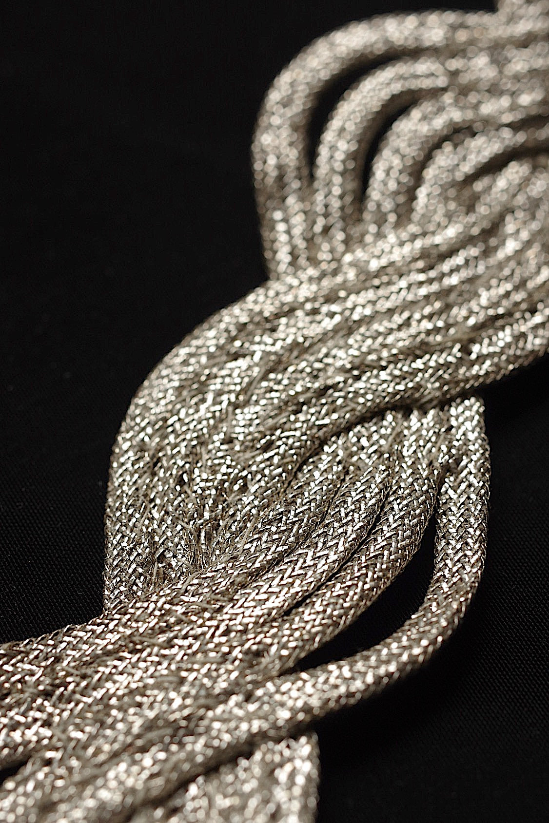 シルバーの輝きが上品タイと小さな襟のセット。繊細なデザインが装いに洗練されたアクセントを加え、クラシックなスタイルを引き立てます。特別な日のファッションにおすすめの一品です。