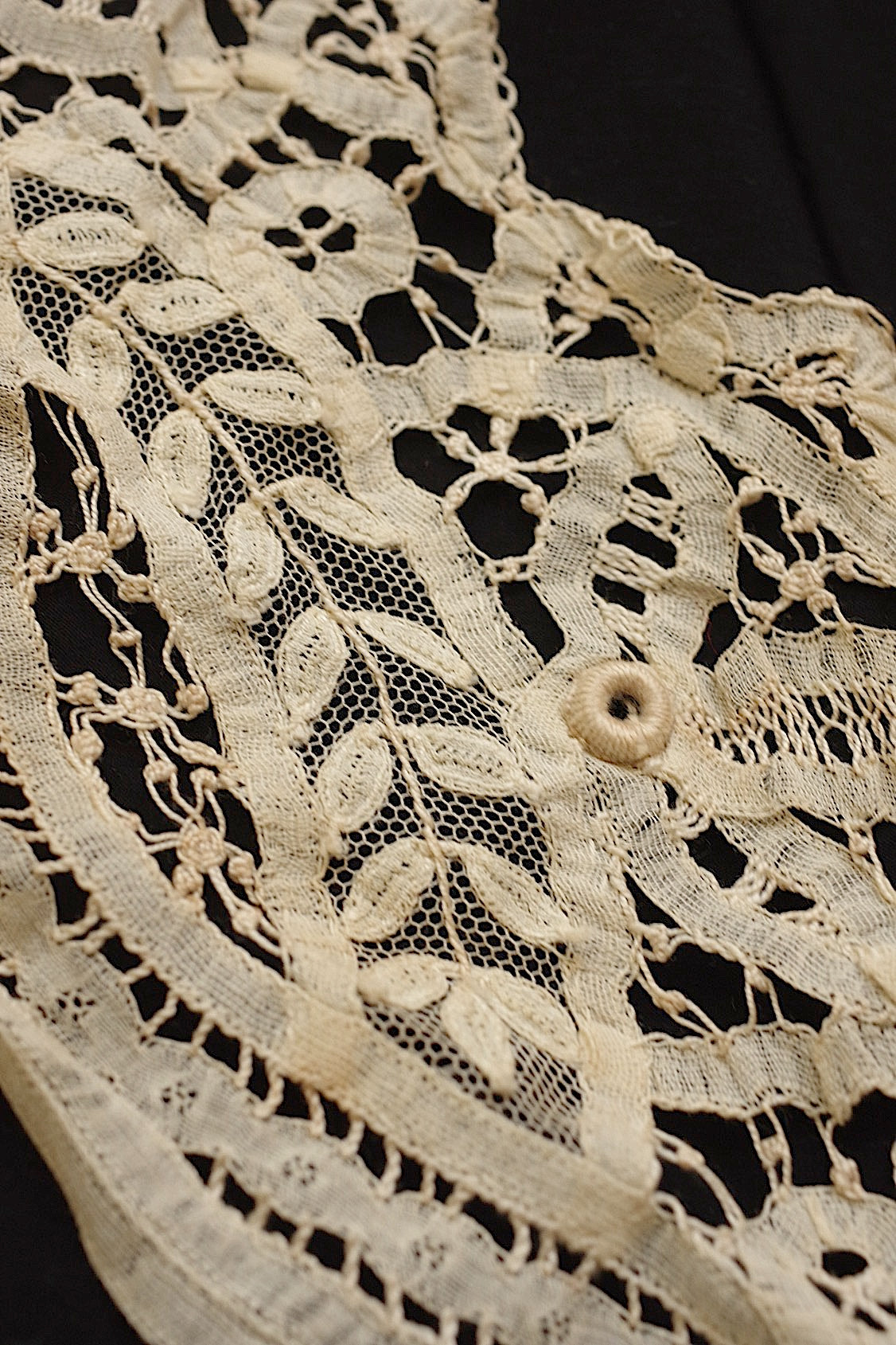 アンティークレースの上品な襟が、あなたのカジュアルスタイルを格上げします。繊細なデンテル模様が醸し出す優雅さは、普段のトップスに重ねるだけで洗練された印象に。小ぶりなサイズだからこそ、どんなコーディネートにも自然に溶け込み、ちょっとした工夫で大人っぽい雰囲気を演出できます。