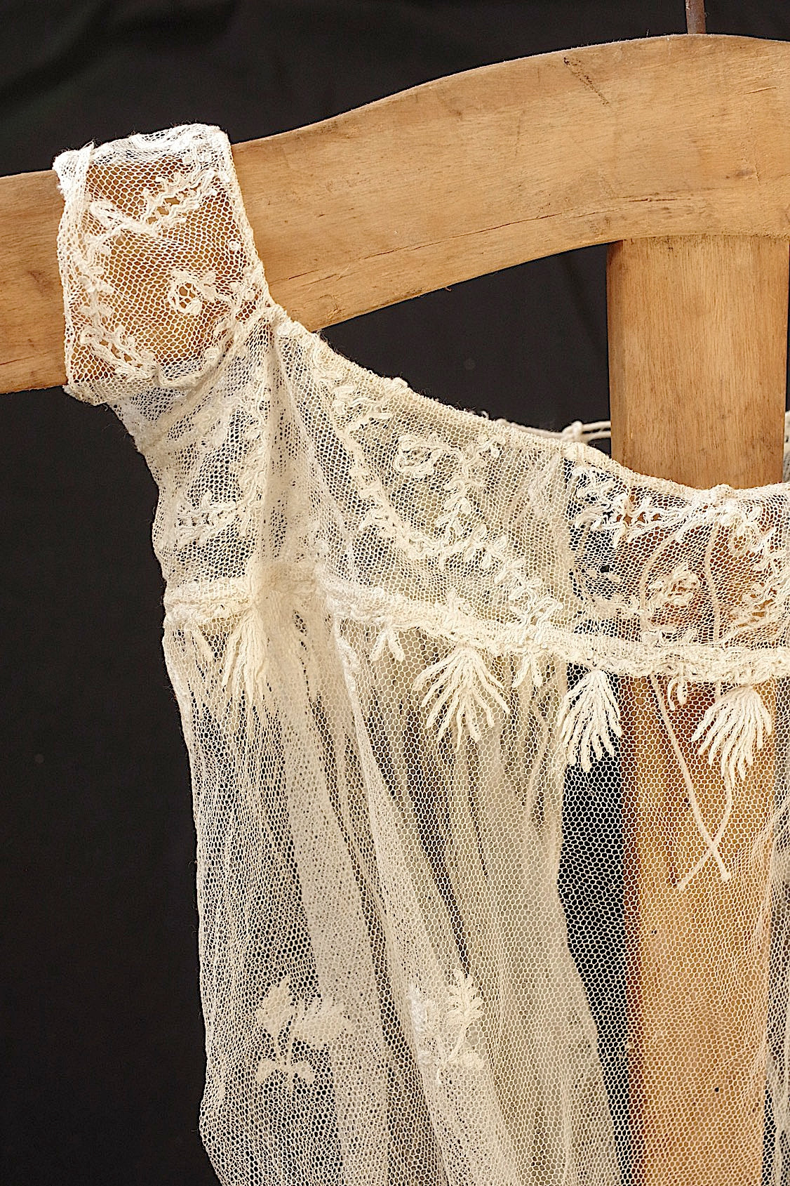 アンティークレースで仕立てた、赤ちゃん用のタブリエ型ドレスです。透き通るような繊細なレース素材が、柔らかく優しく小さな体を包み込みます。タブリエのシルエットは、クラシックな可愛らしさを引き出し、特別な日の装いを格別に。。世代を超えて愛される、時代を超越した美しさを纏わせてください。ドール用にも。