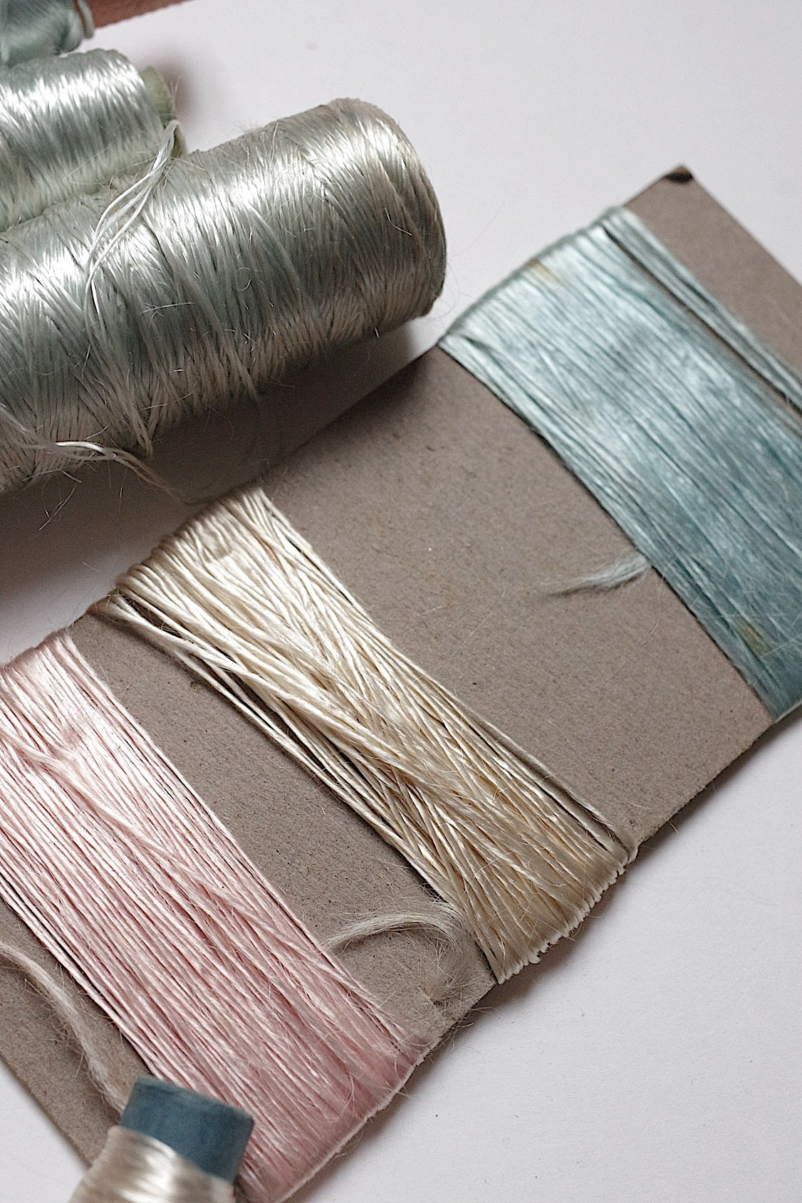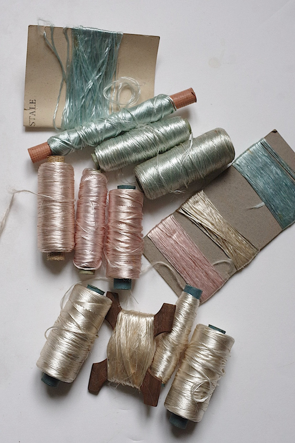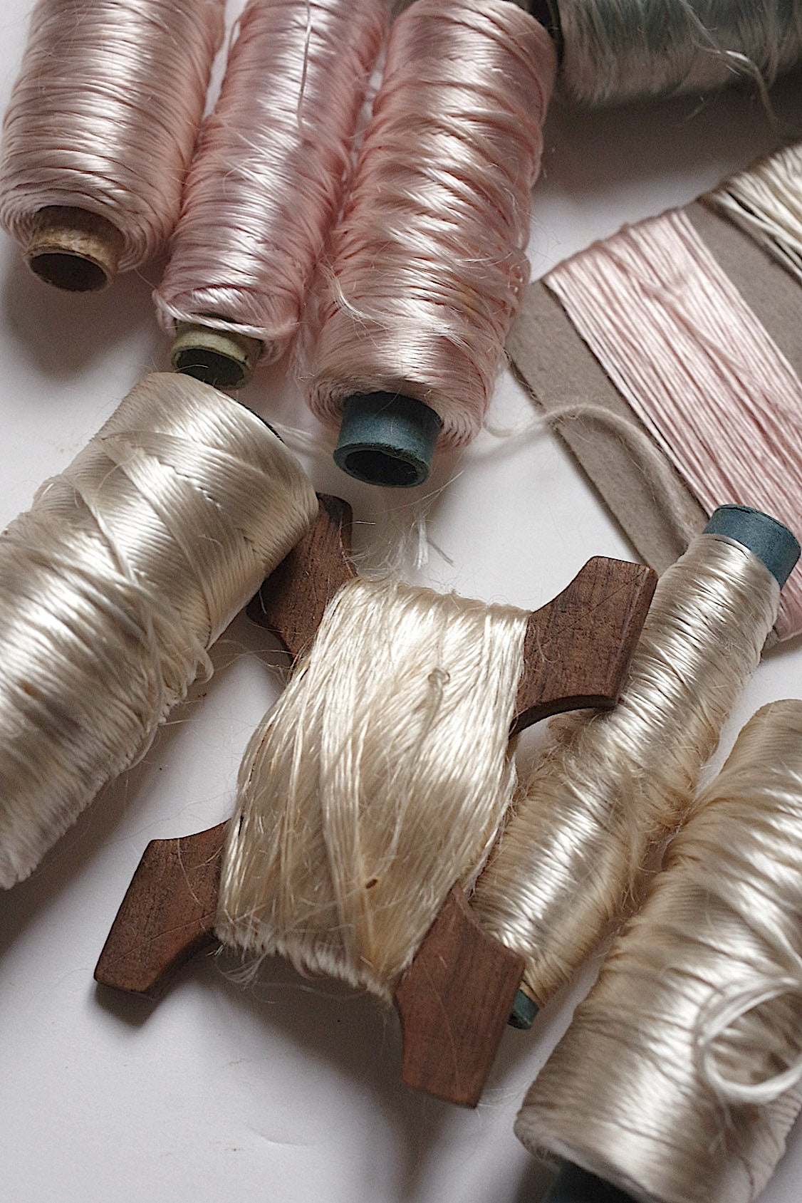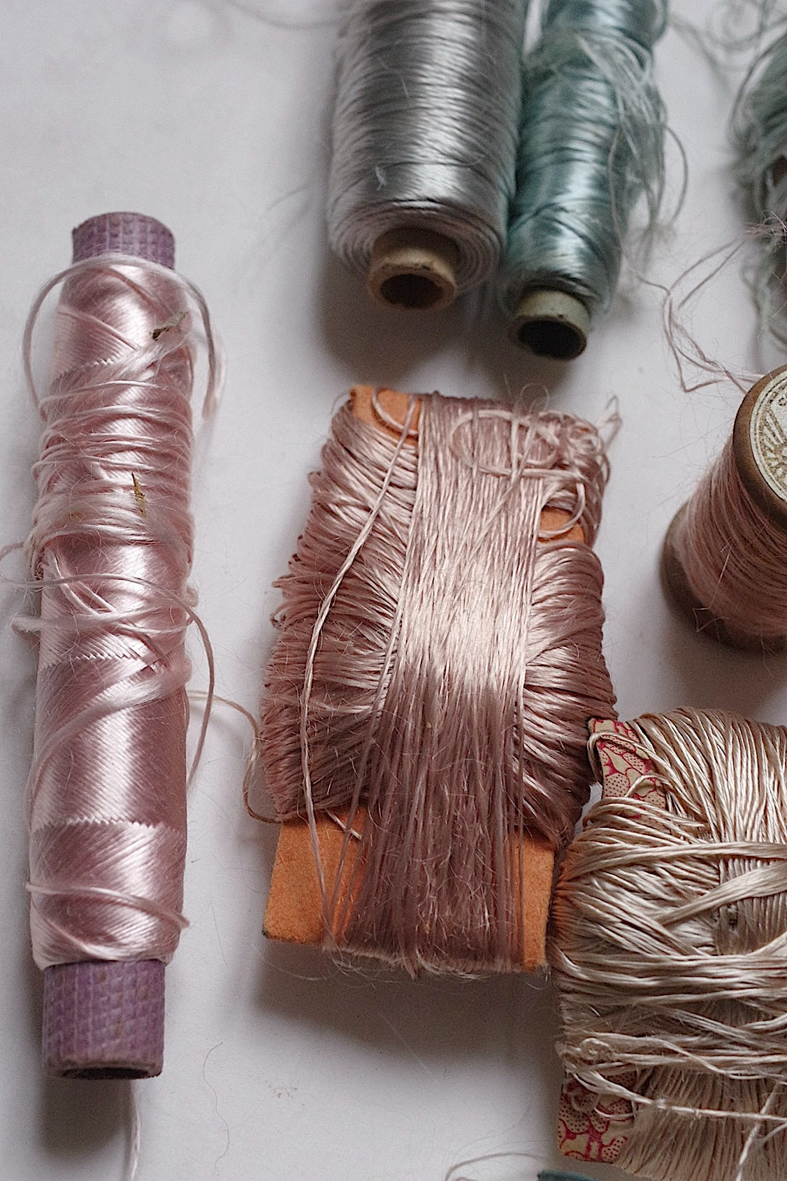 繊細な淡いパステルカラーと光沢のある糸が美しく調和した「アンティークボビン fil antique 」のセット。手仕事に上品な彩りを添え、作品に柔らかな印象と華やかさをプラスします。クラフトや刺繍、ギフトラッピングなど、多彩な用途で創造力を刺激する魅力的なアイテムです。貴重なアンティーク風の風合いが、一味違う手作りのアクセントに最適です。素材は主にレーヨンです。が限りなくシルクに近い風合い、当時もたくさん使われていた糸です。