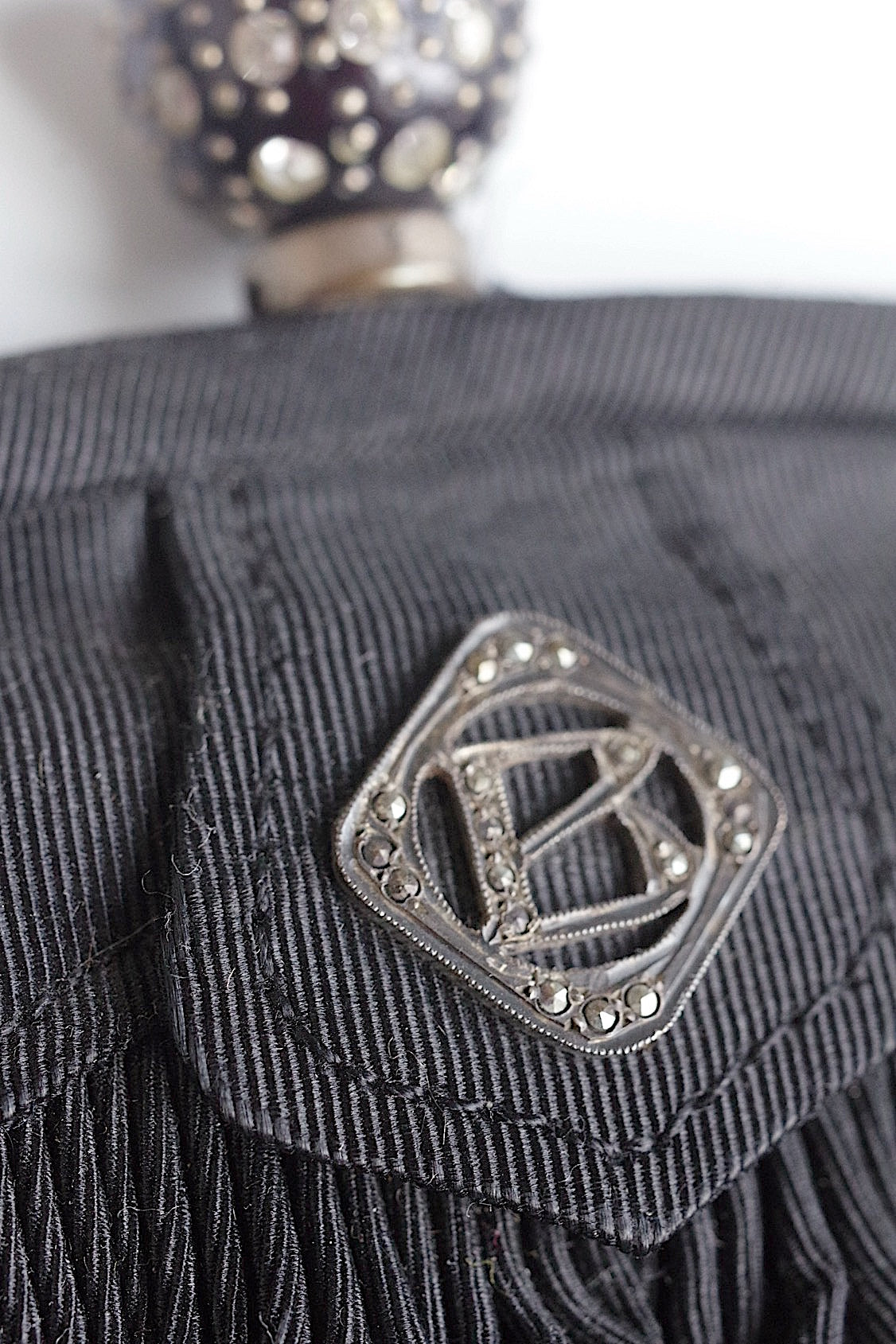 レースドレスの脇に下げて使われた小さなバッグです。繊細なデザインが当時の優雅さを感じさせ、特別な日の装いに上品なアクセントを加えます。希少な一品として、クラシカルなスタイルを愛する方に最適です。中も状態良しです。