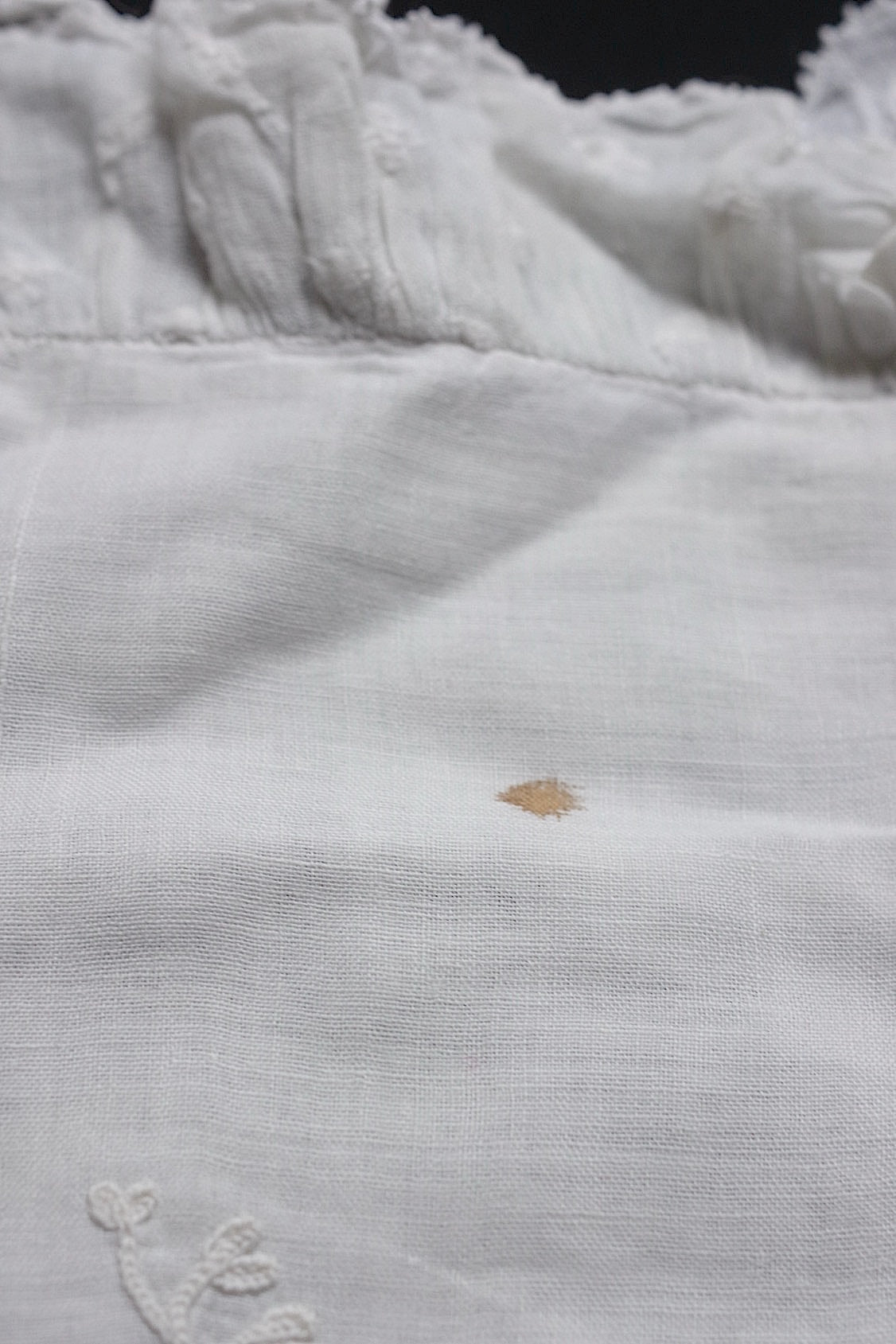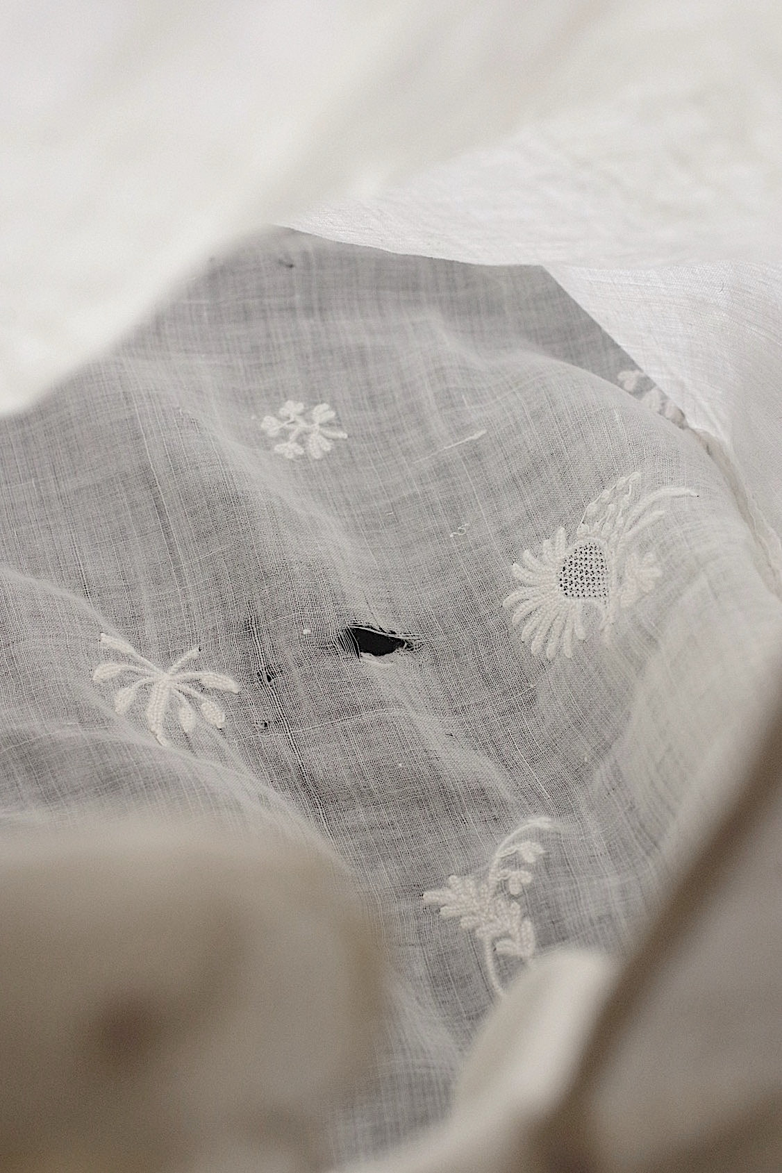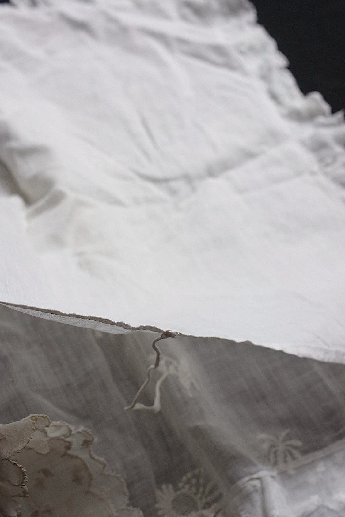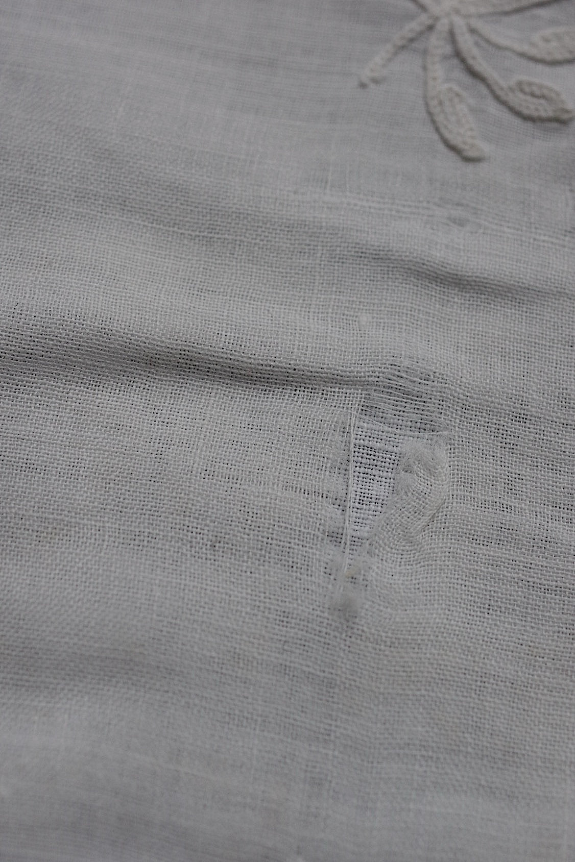 繊細なチュールとポワンデュボーヴェ技法の美しい組み合わせが特徴です。伝統的な手仕事が生み出す立体感と優雅なデザインが、お部屋に上質なアクセントを加えます。上品な素材使いで、インテリアにピッタリです。刺繍の方は穴が少し見られます。