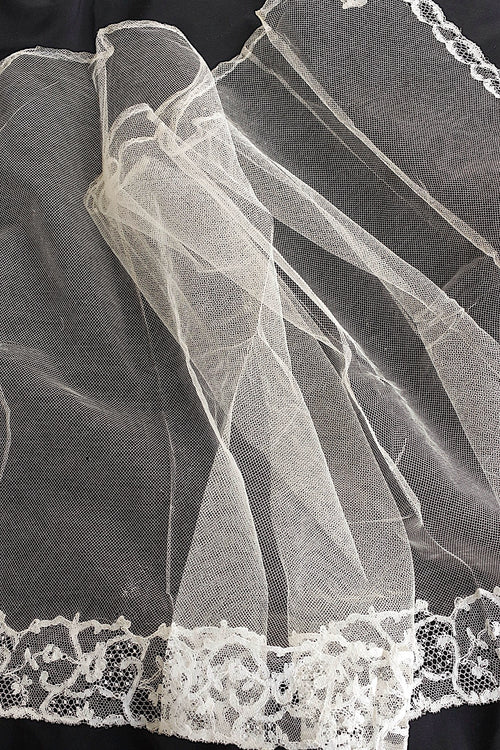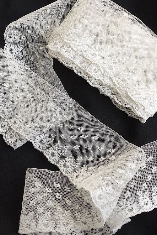 ヨーロッパの高貴な夫人たちに愛されたアランソンレース。繊細な小花柄が可愛らしさと優雅さを兼ね備え、444cmの長さは贅沢な使い方を叶えます。細部にまで職人の手仕事の痕跡が残り、時代を経た味わい深さが魅力。一部に馬の尾毛が残る箇所も、アンティークの真正性を物語る証。ドレスの装飾からインテリアまで、歴史と格調を纏う特別な一枚です。
