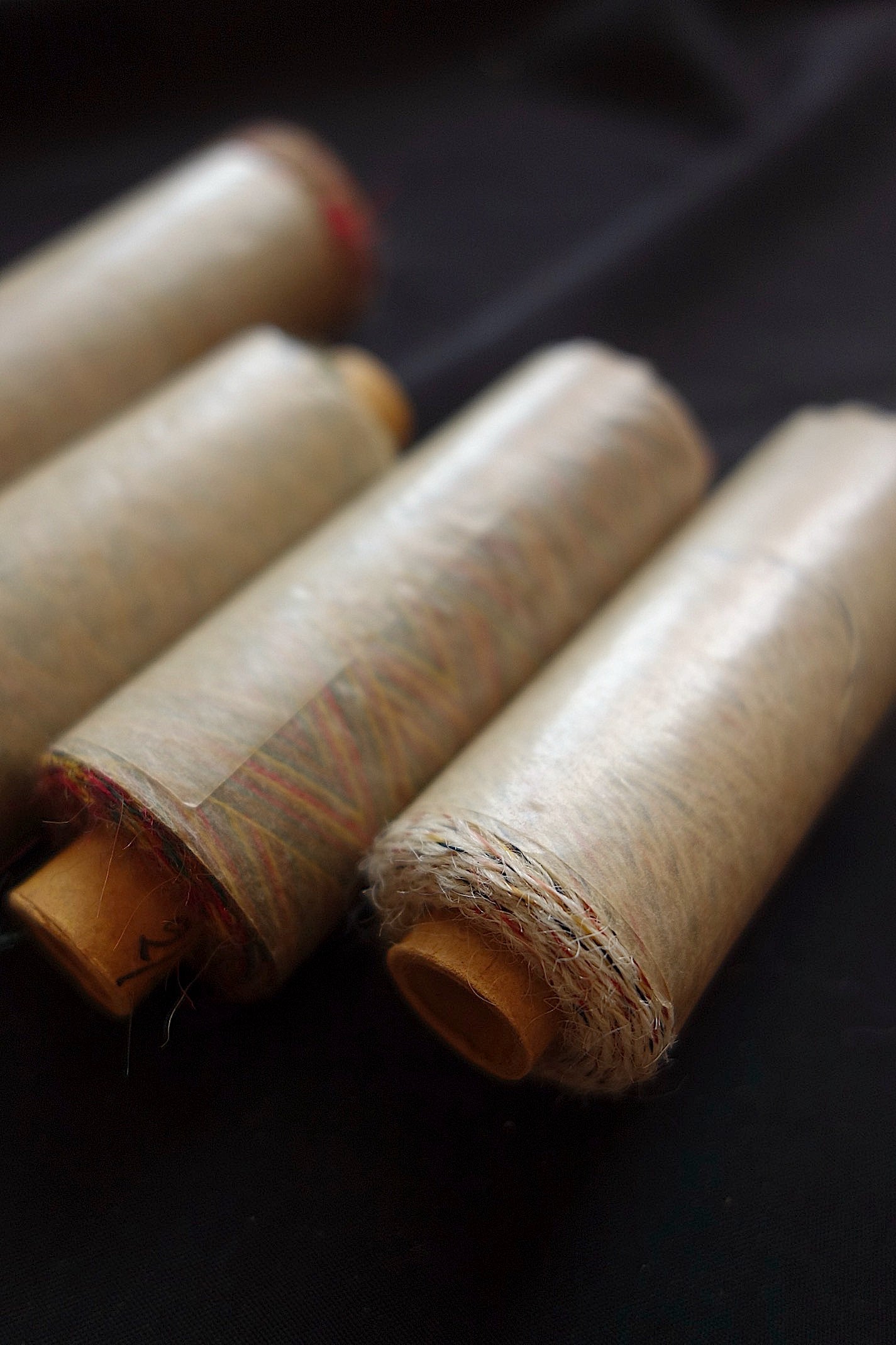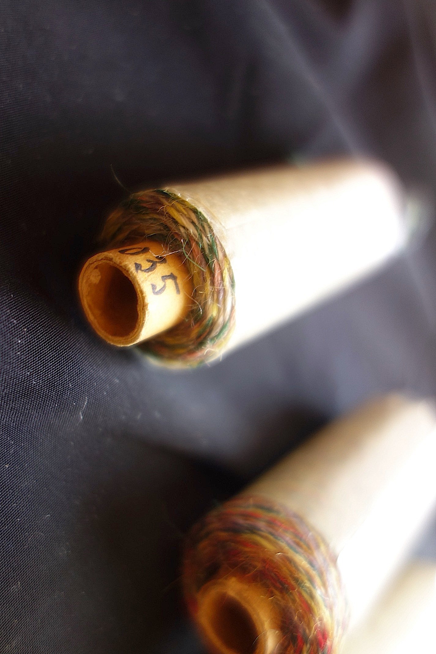 色がミックスされているボビン。燃焼してみたらシルクのようですが、触った感じを合わせてあまり確証がありません。。見た感じもとても映えます。