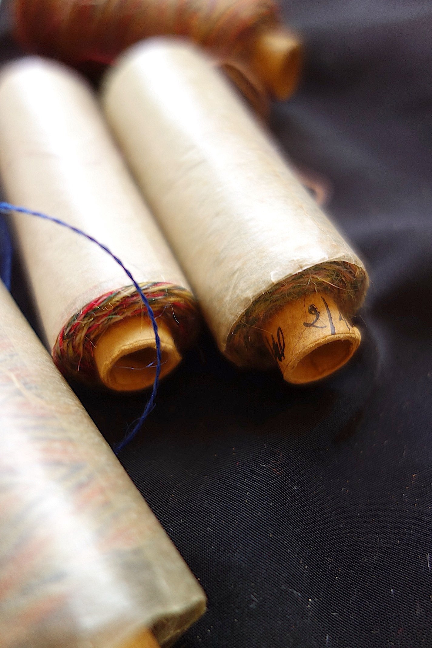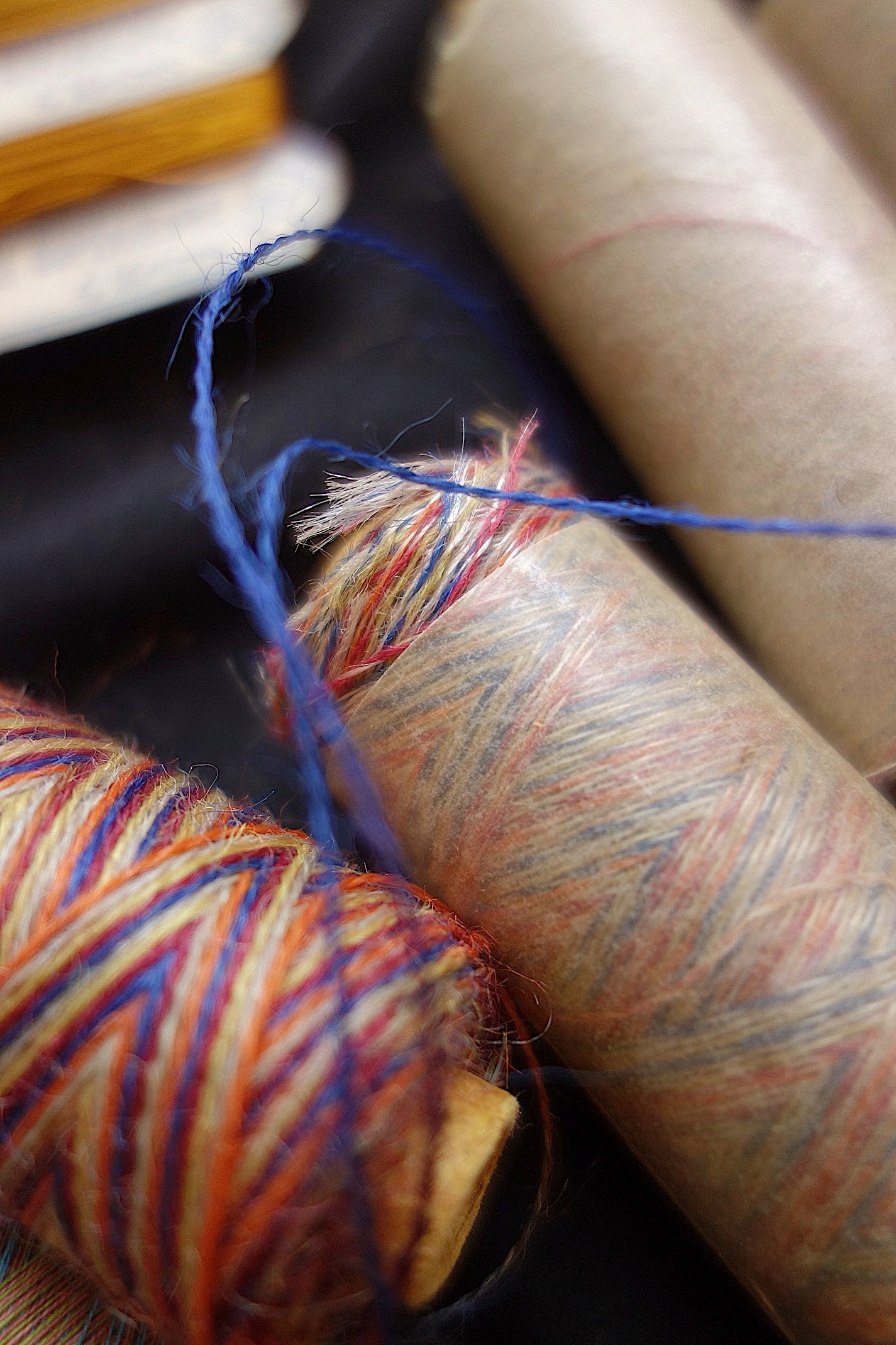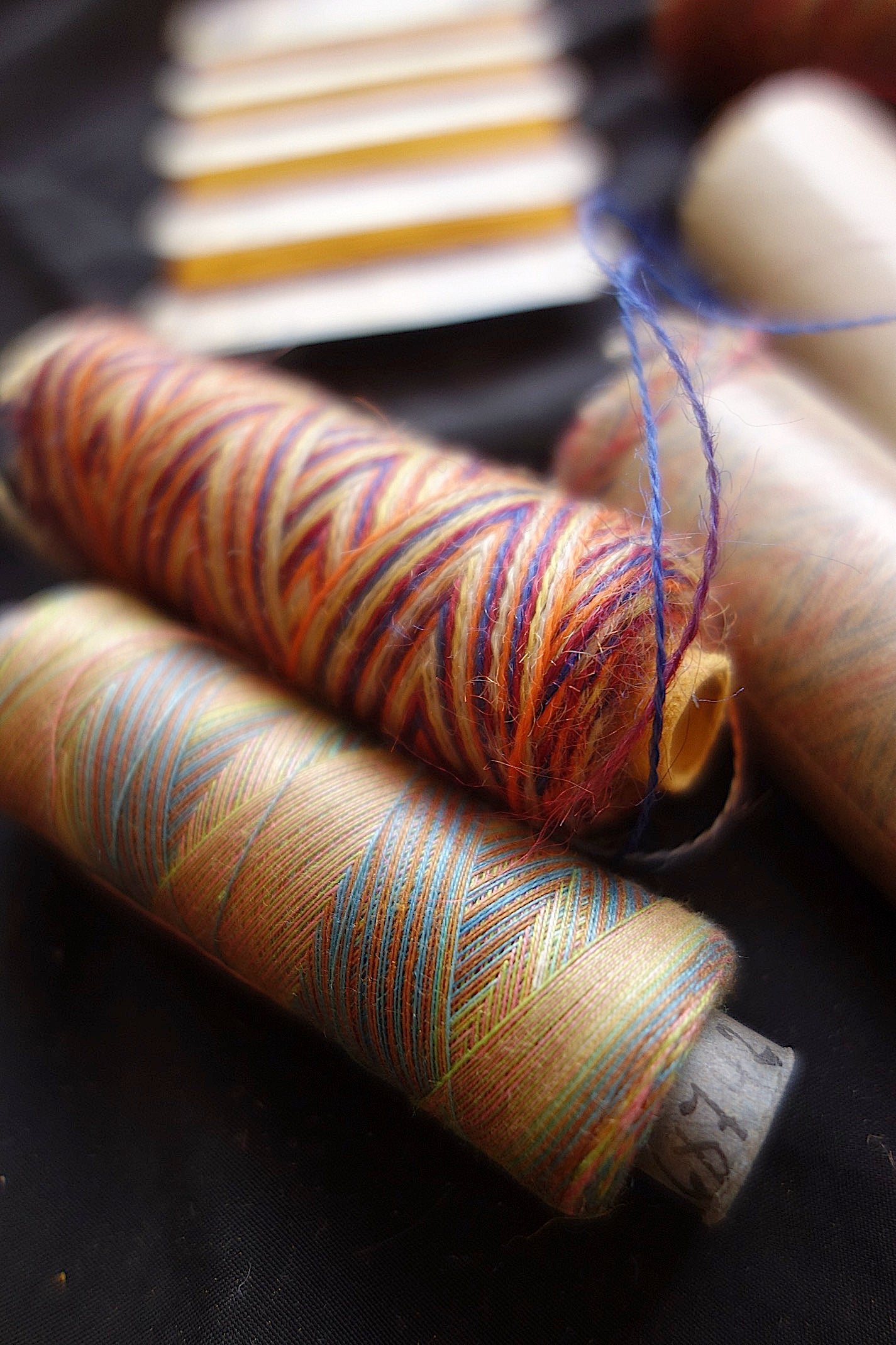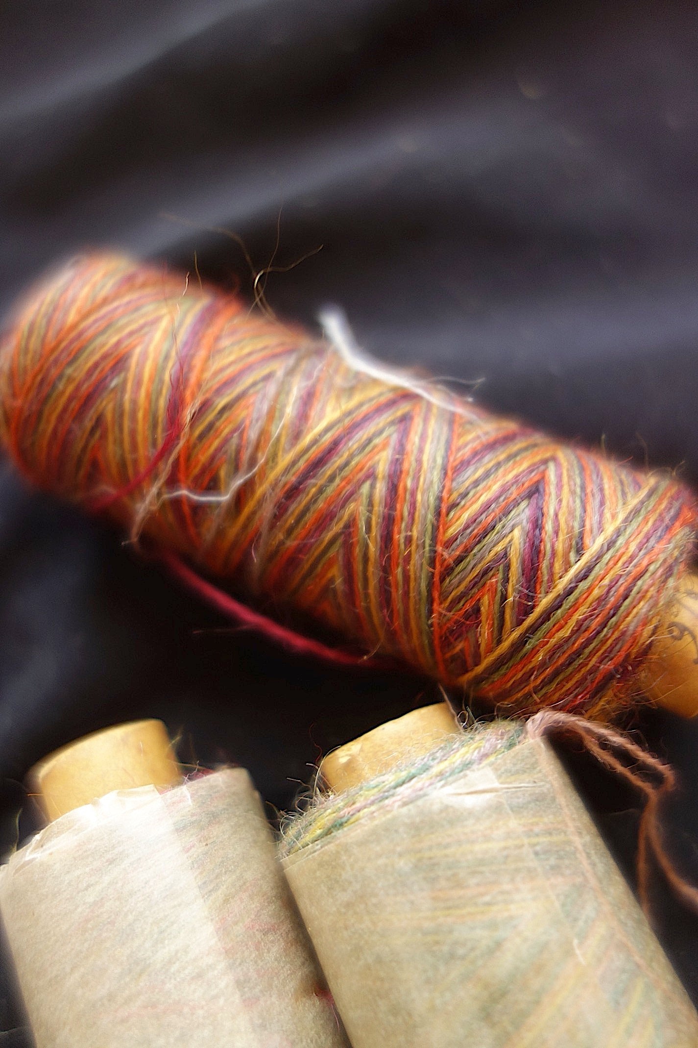 色がミックスされているボビン。燃焼してみたらシルクのようですが、触った感じを合わせてあまり確証がありません。。見た感じもとても映えます。
