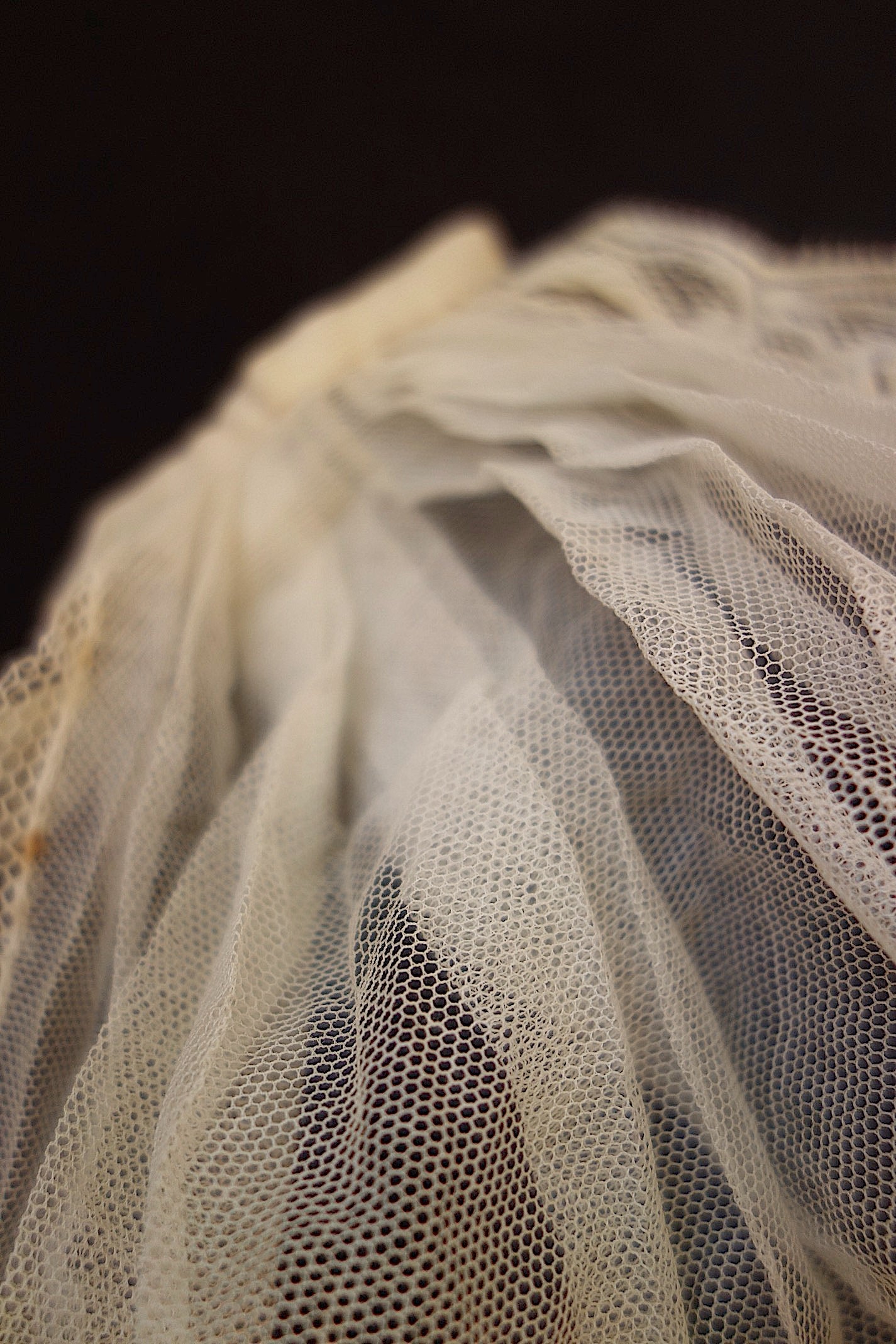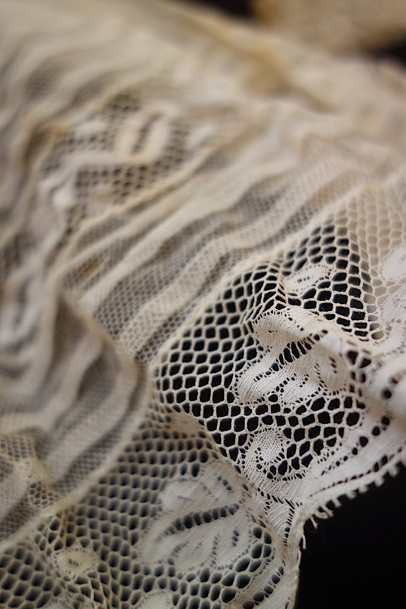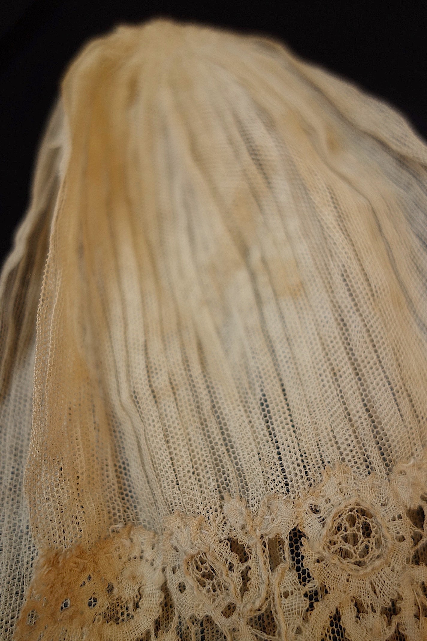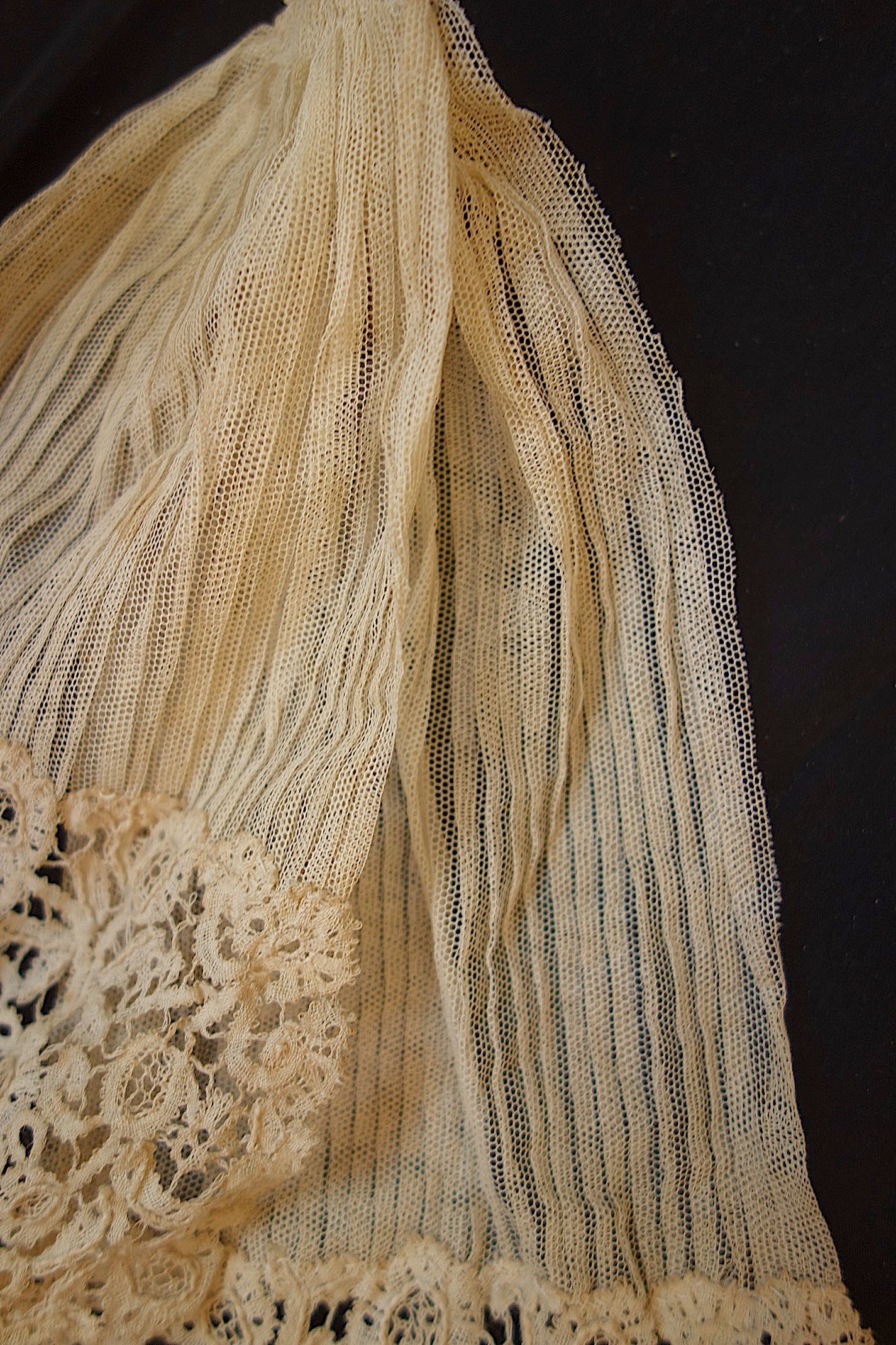 細かいプリーツ、ギャザーの寄った2つのジャボ。特にプリーツの方は、ロザリンレースでの装飾で、一層繊細さが増します。