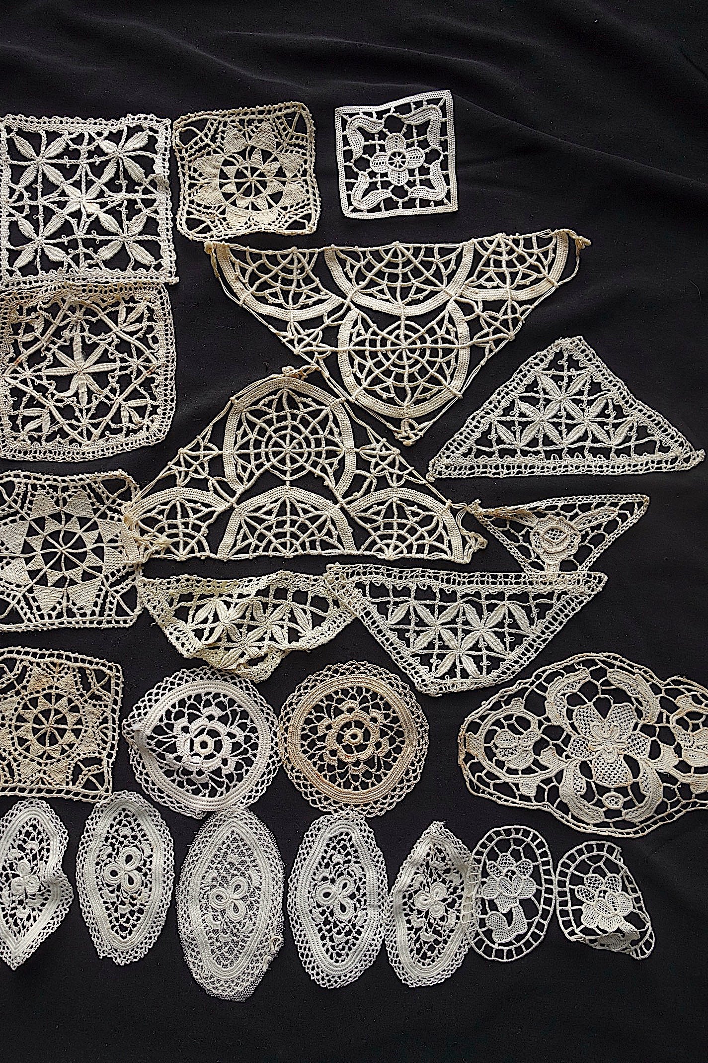 アンティークレースのモチーフを使用した、装飾品やインテリアの装飾に最適なセットです。様々なデザインのモチーフが含まれ、服飾やインテリアをより美しく演出します。アンティークな雰囲気を楽しめる商品です。