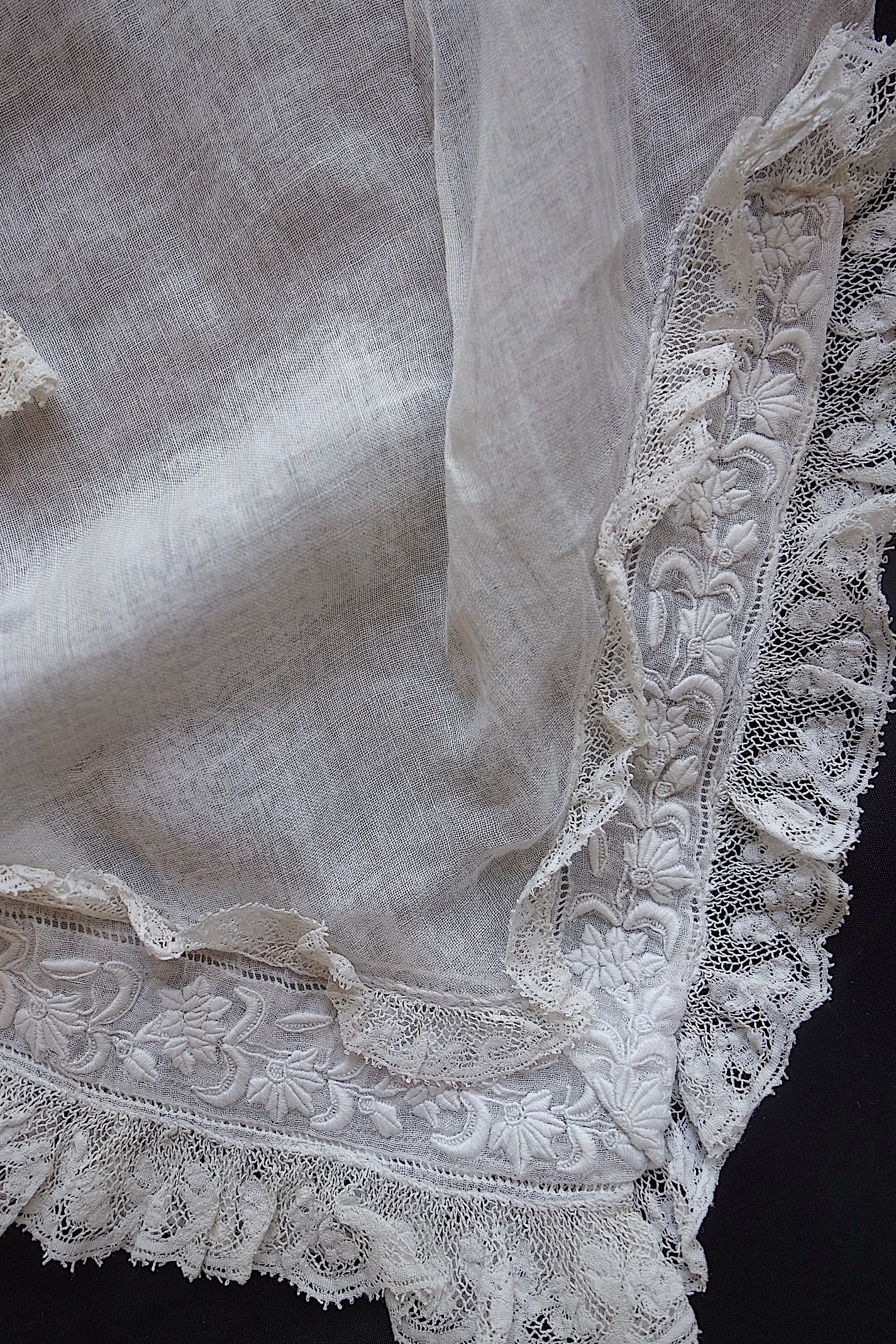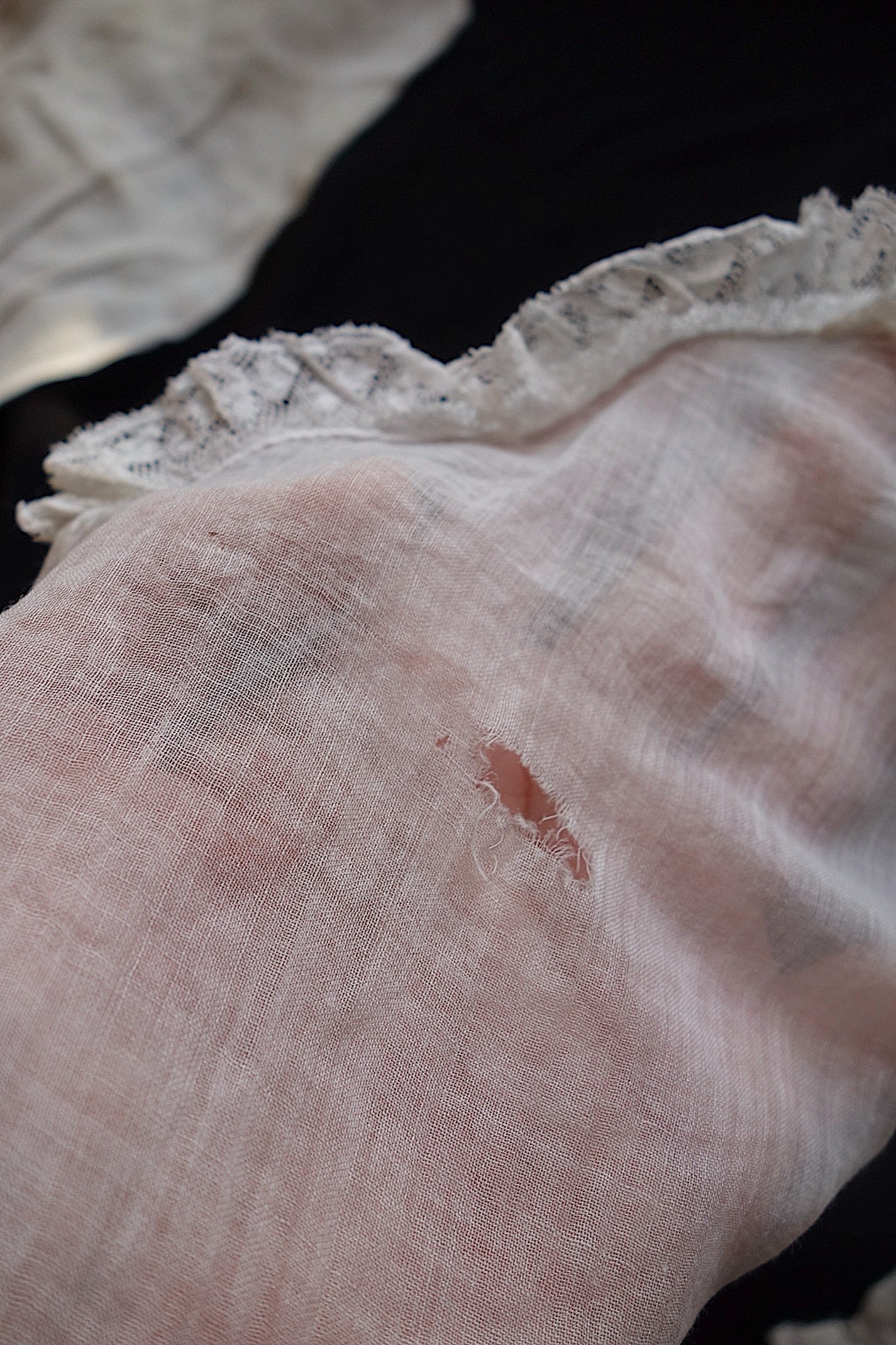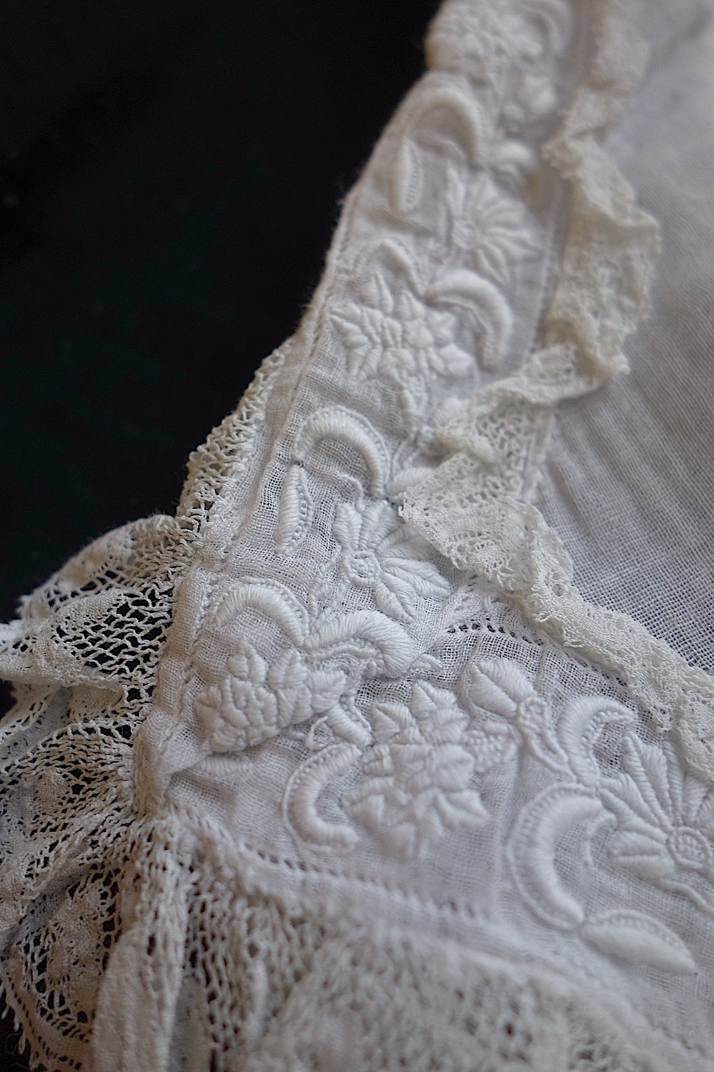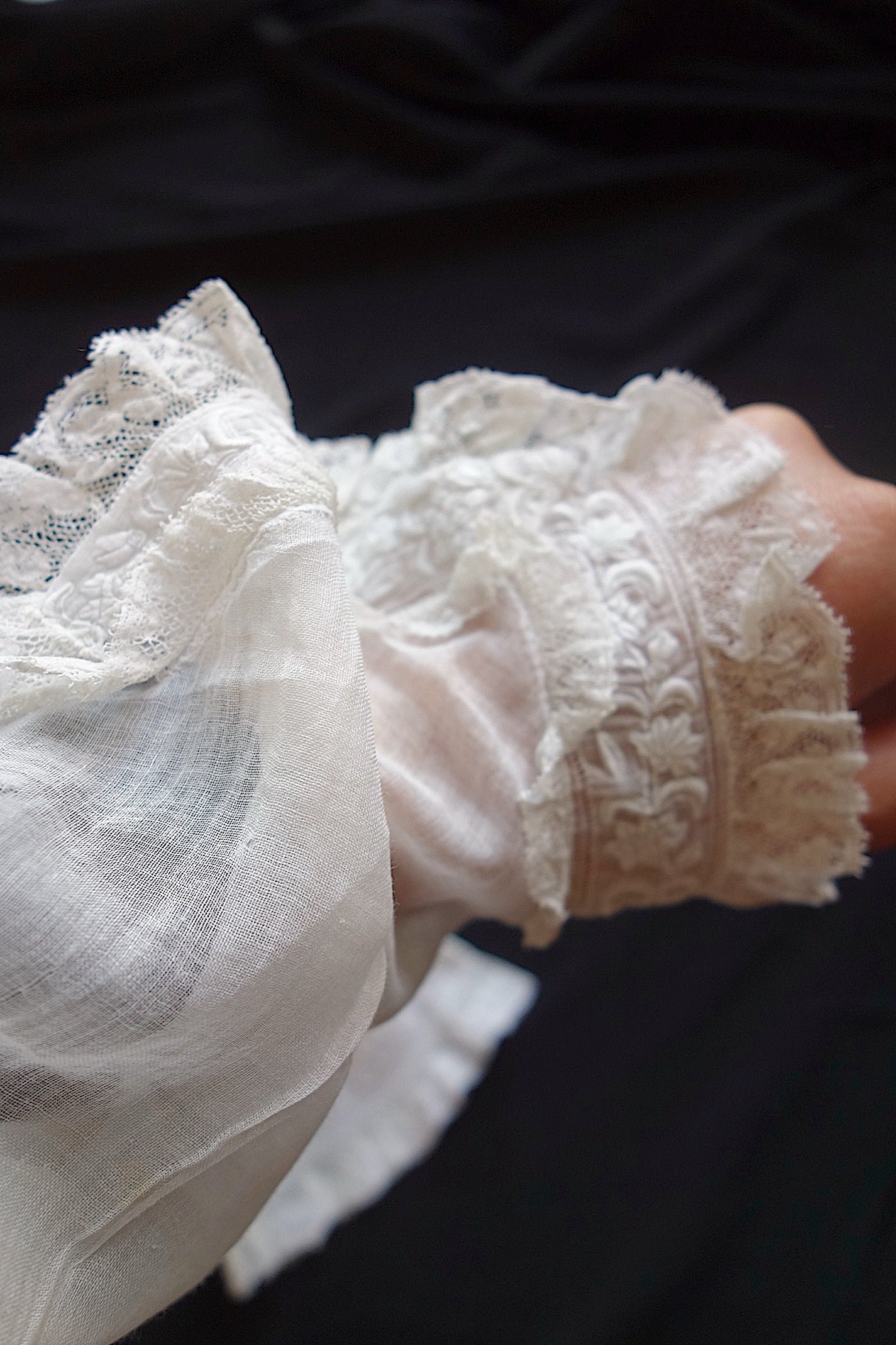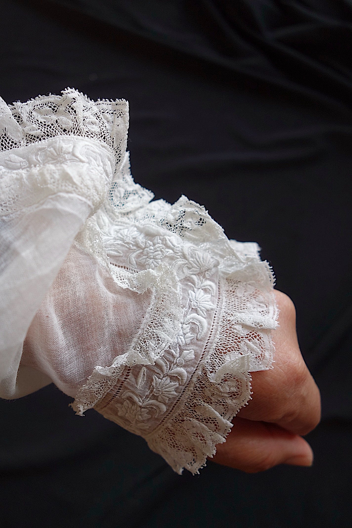当時袖口を手軽に飾るために使われていた、袖口。見せるものだけあって、刺繍、レースの装飾かふんだんにあります。ペア1組+片側1つ