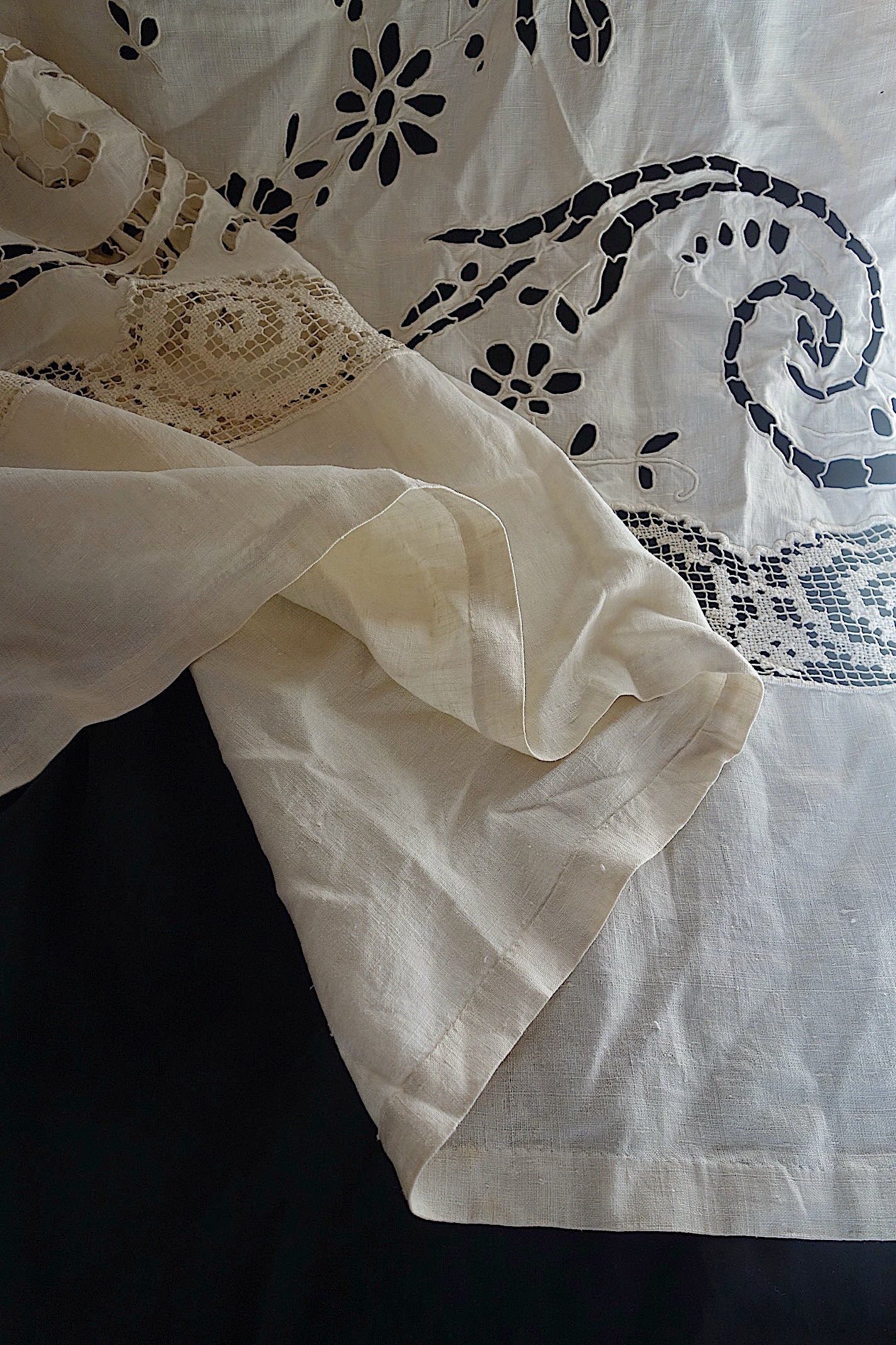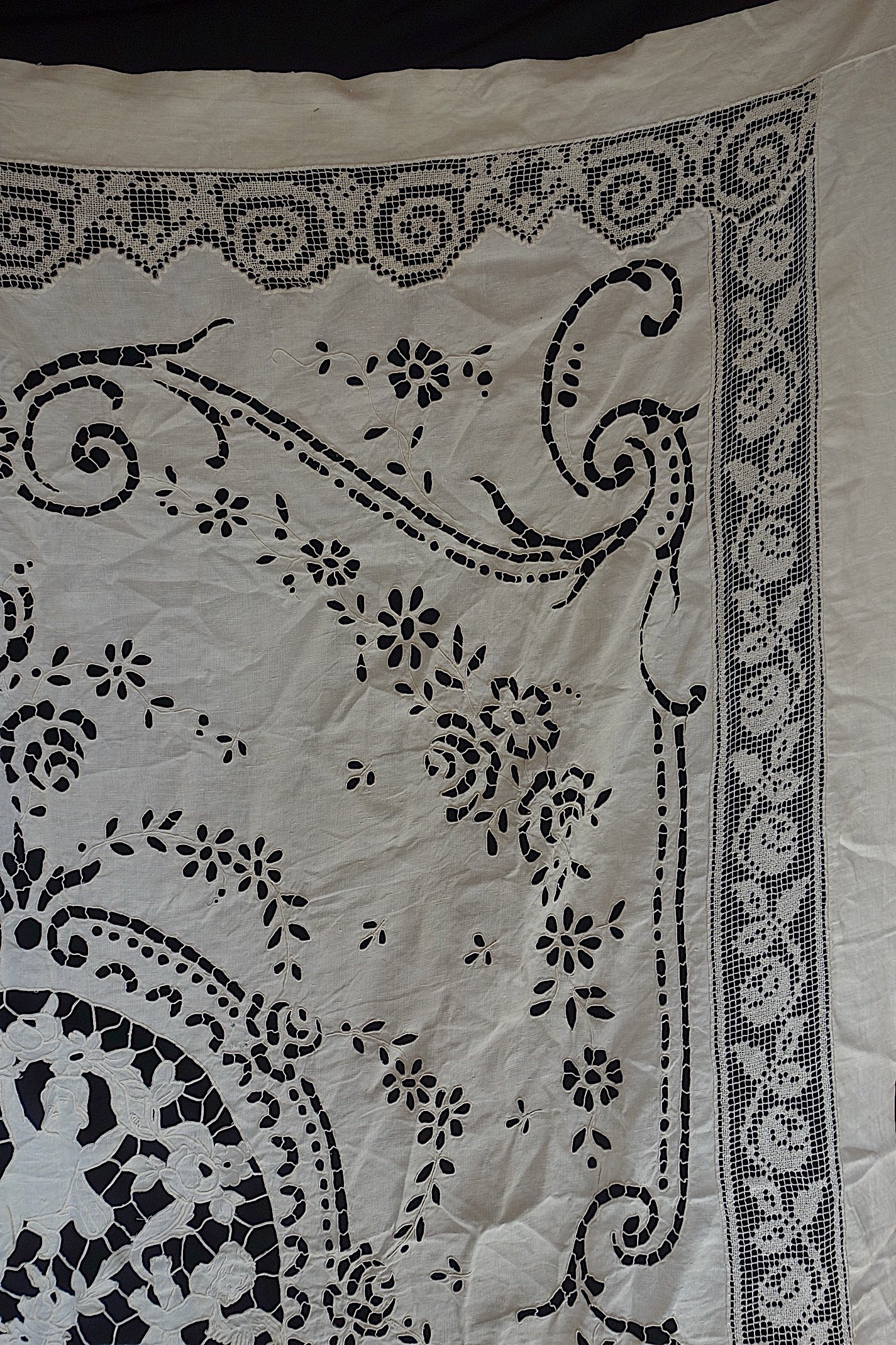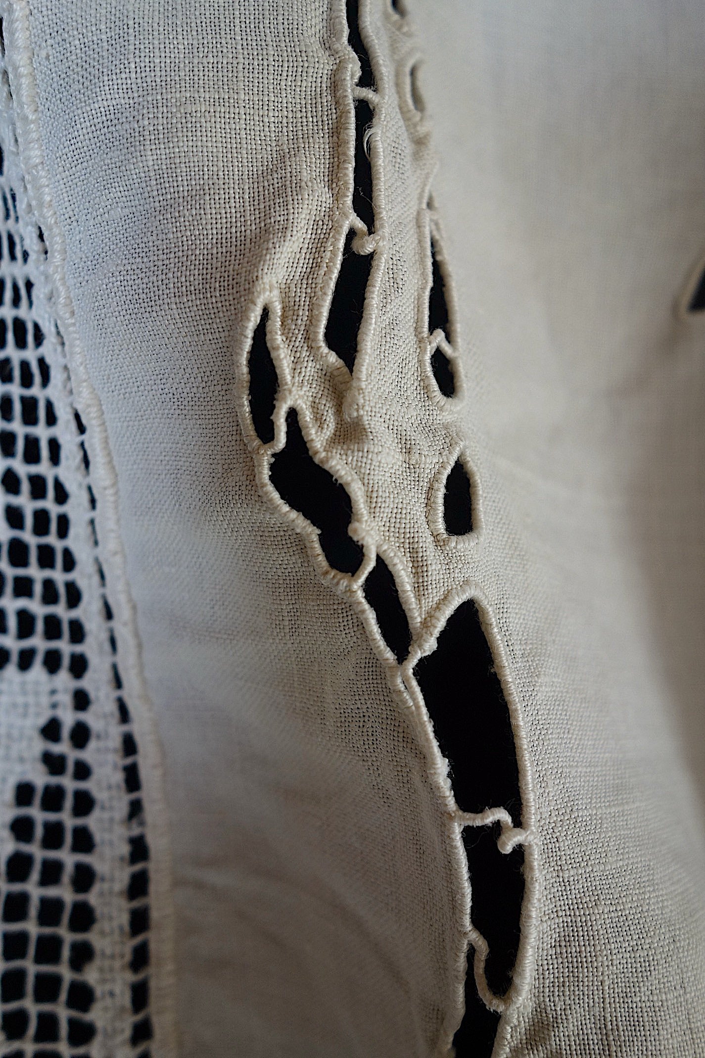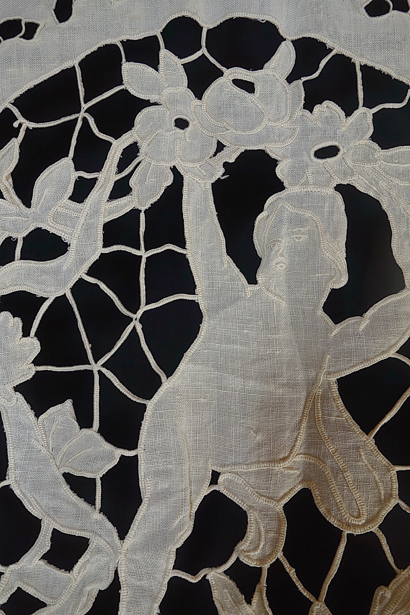 天使の刺繍モチーフが優雅に施された、アンティークカーテンです。大きく描かれた天使のデザインが、お部屋に格調高い雰囲気と物語性をもたらします。アンティーク刺繍の繊細な手仕事が光る逸品で、窓辺を美しく彩りながら、インテリアに深みと個性を加えます。クラシックな魅力と現代的な空間の融合を実現する、こだわりのあるお客様のための選択肢です。大きなお屋敷にあったクロスです。
